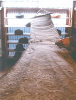 伸子針とは竹で出来た針。これを使って脱水後の生地のしわを伸ばします。 昔はあたり前だったこの手法ですが今では機械で行うのが一般的です。 織布では生地の状況を確認把握する為に全て昔ながらの手作業で行っています。